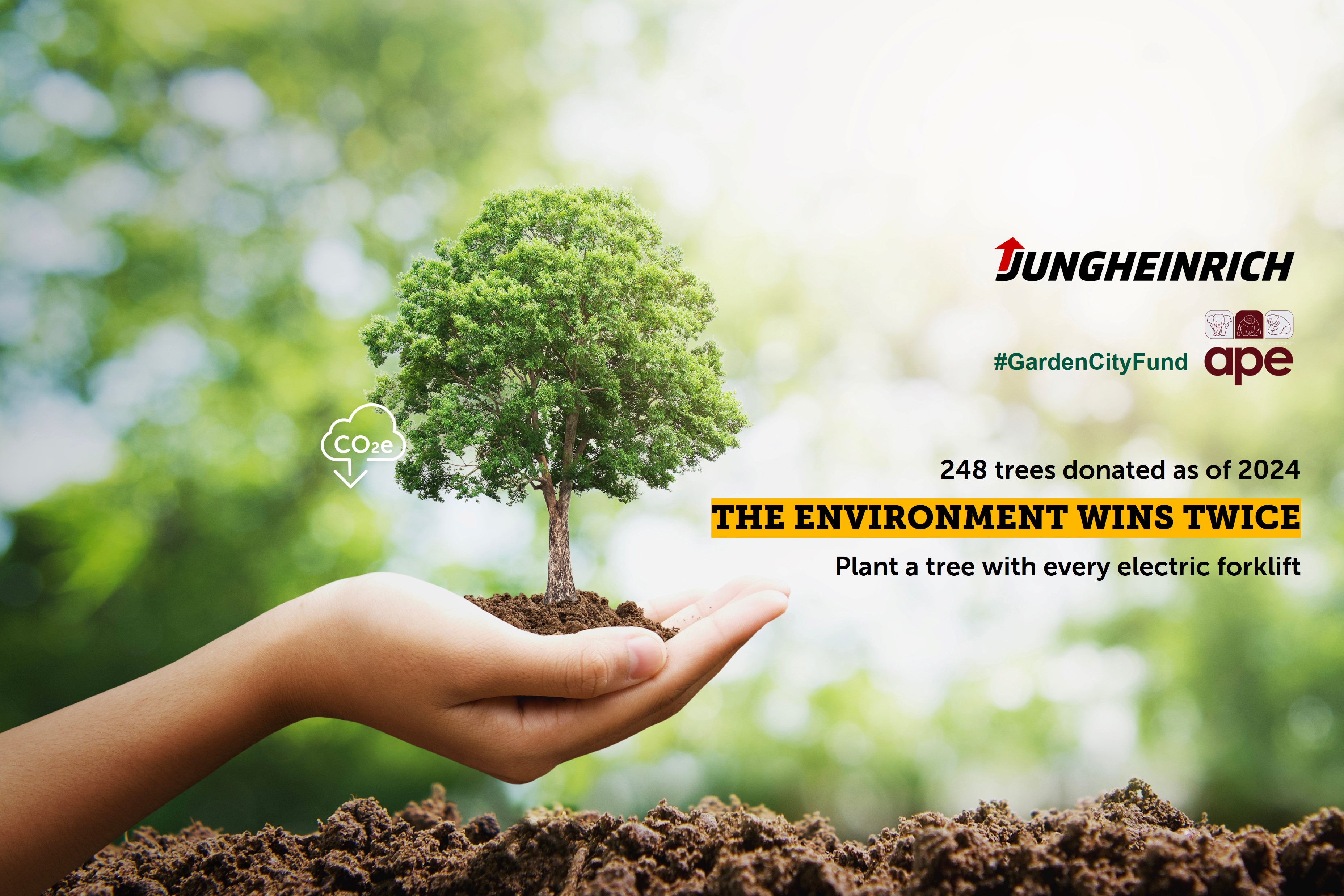 243 trees through a joint contribution with Jungheinrich Malaysia to APE Malaysia, supporting reforestation and the restoration of wildlife habitats.